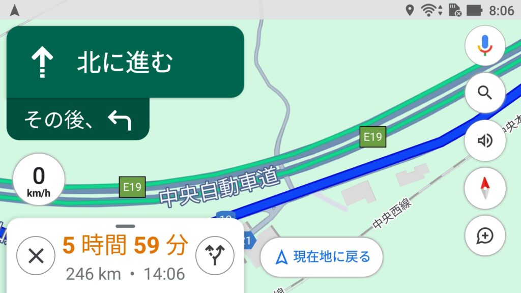 画面は5.5インチなのでこれだけ大きい文字であれば、私のようなシニアな年齢でも、近眼の方でも使うことができます。すっきりした画面でいいですよねー、本物のナビとさほど変わりません。