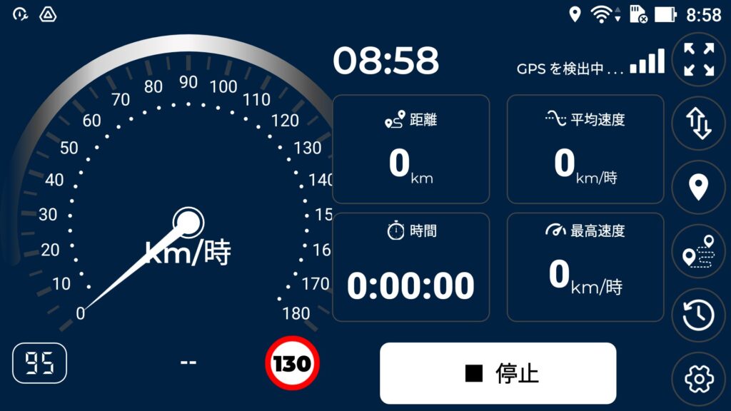 フリーウェアの速度計をセットしました。ナビを使わないときは、平均時速とか最高速、本日の経過時間などを表示してサブの計器類風に楽しめます。たくさん種類があるので気分に合わせて選択OK!