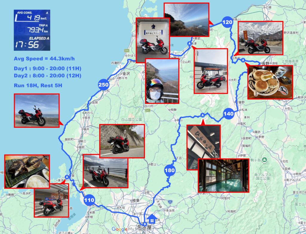 ■2日目:魚津 → 名古屋(約440km)